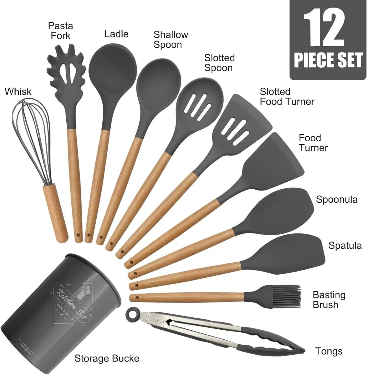 Silicone Spoon Set Wooden 19 Set